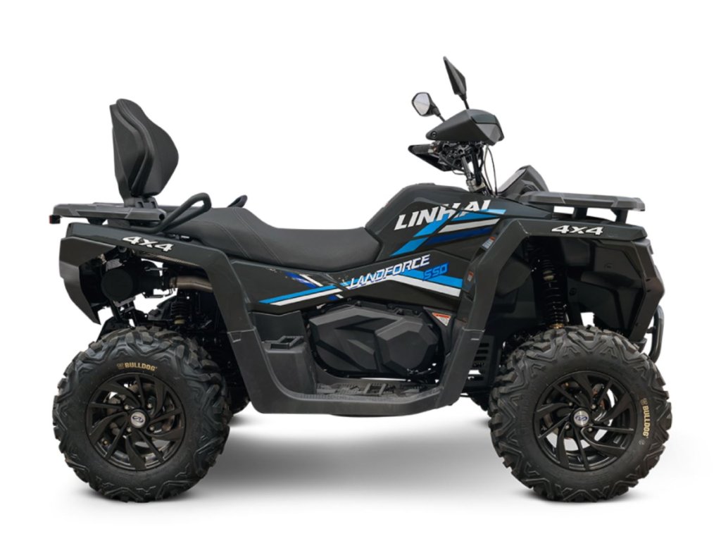 Linhai Landforce 550L nabízí mimořádně bohatou výbavu, ve které nechybí atraktivní 12" litá kola se značkovými 25“ pneumatikami Bulldog, elektrický naviják 3000 lbs, homologované tažné zařízení, plnobarevný 7“ TFT displej nebo elektrický posilovač řízení EPS. Vše, co si chcete vzít s sebou, pojmou kompozitní nosiče a praktické úložné schránky. Ve výbavě najdete i chrániče rukou, 12 V zásuvku, USB port nebo pohodlné vyvýšené sedadlo spolujezdce.