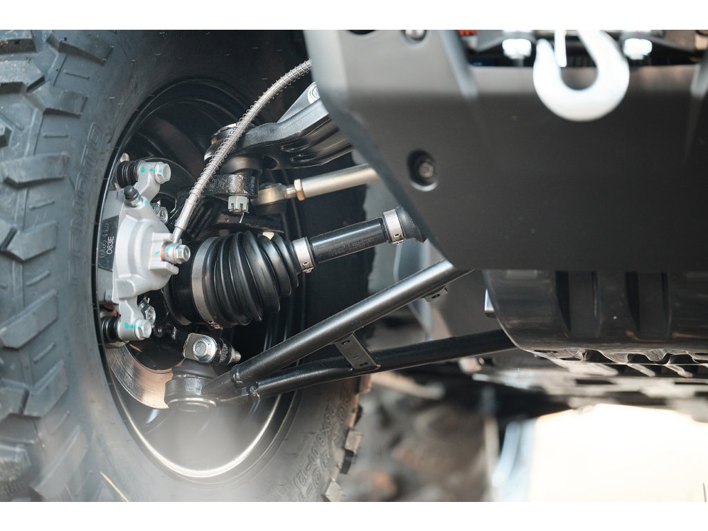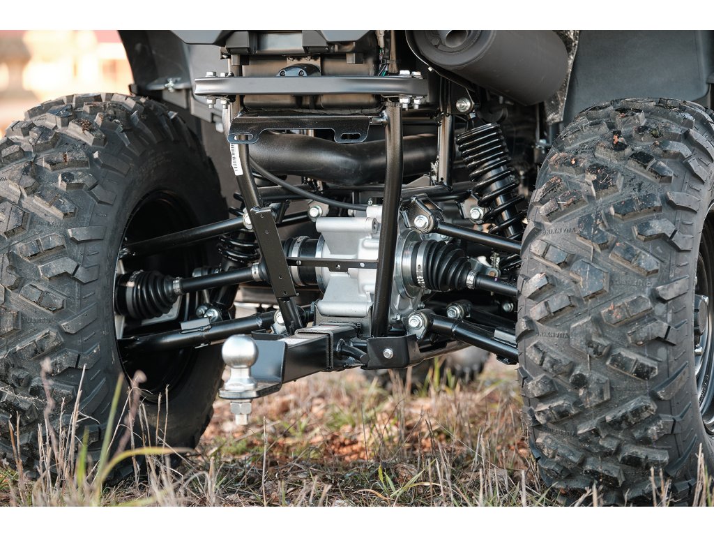 Převodovka: Automatická CVT – variátor / uzamykatelný přední diferenciál / převody P/R/N/H/L (parkovací/zpětný chod/neutrál/rychle vpřed/terénní redukce)
